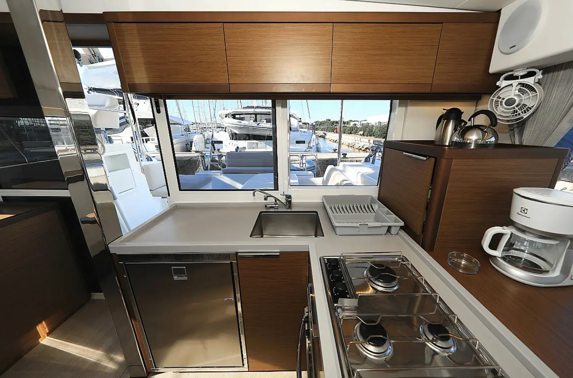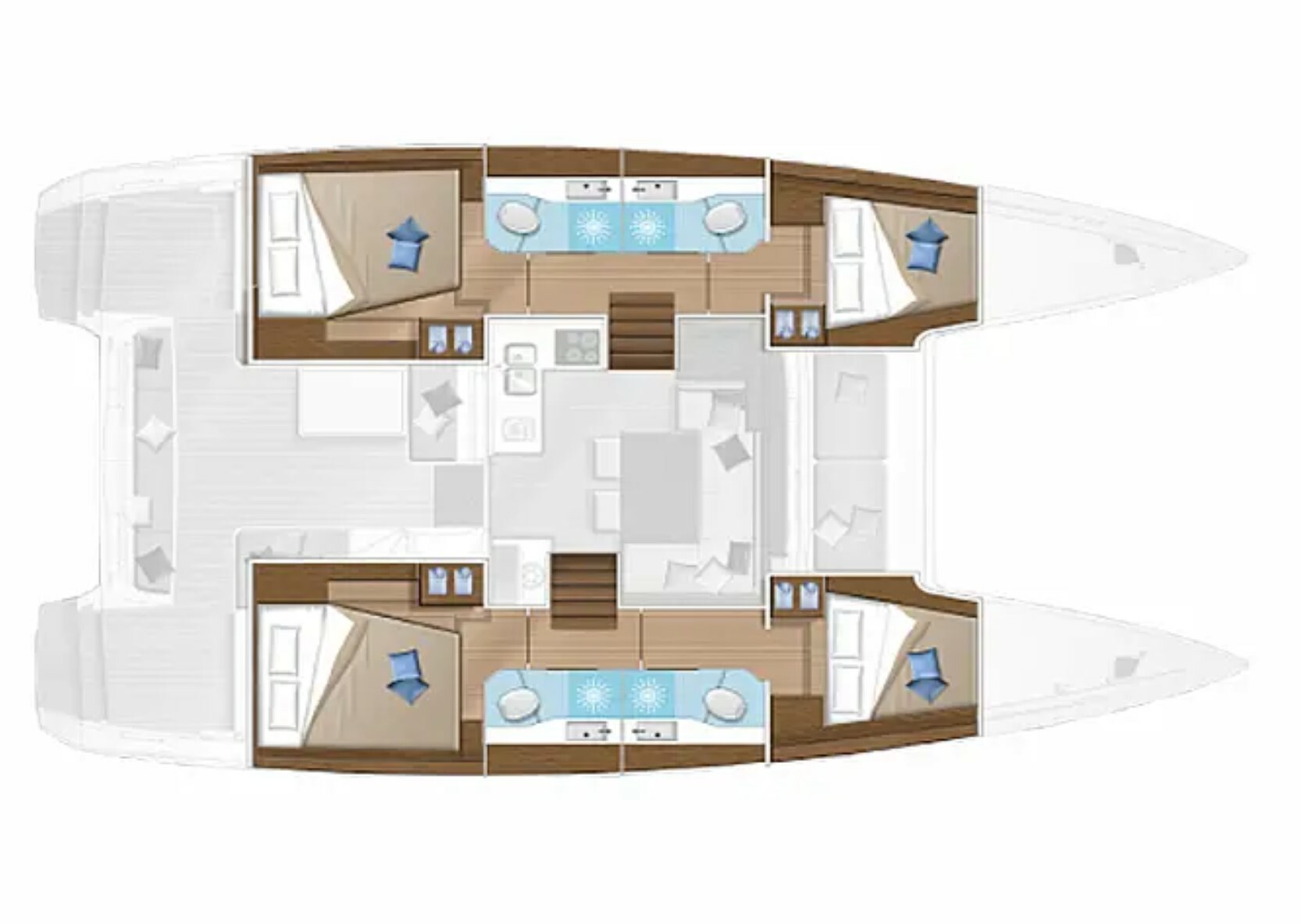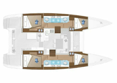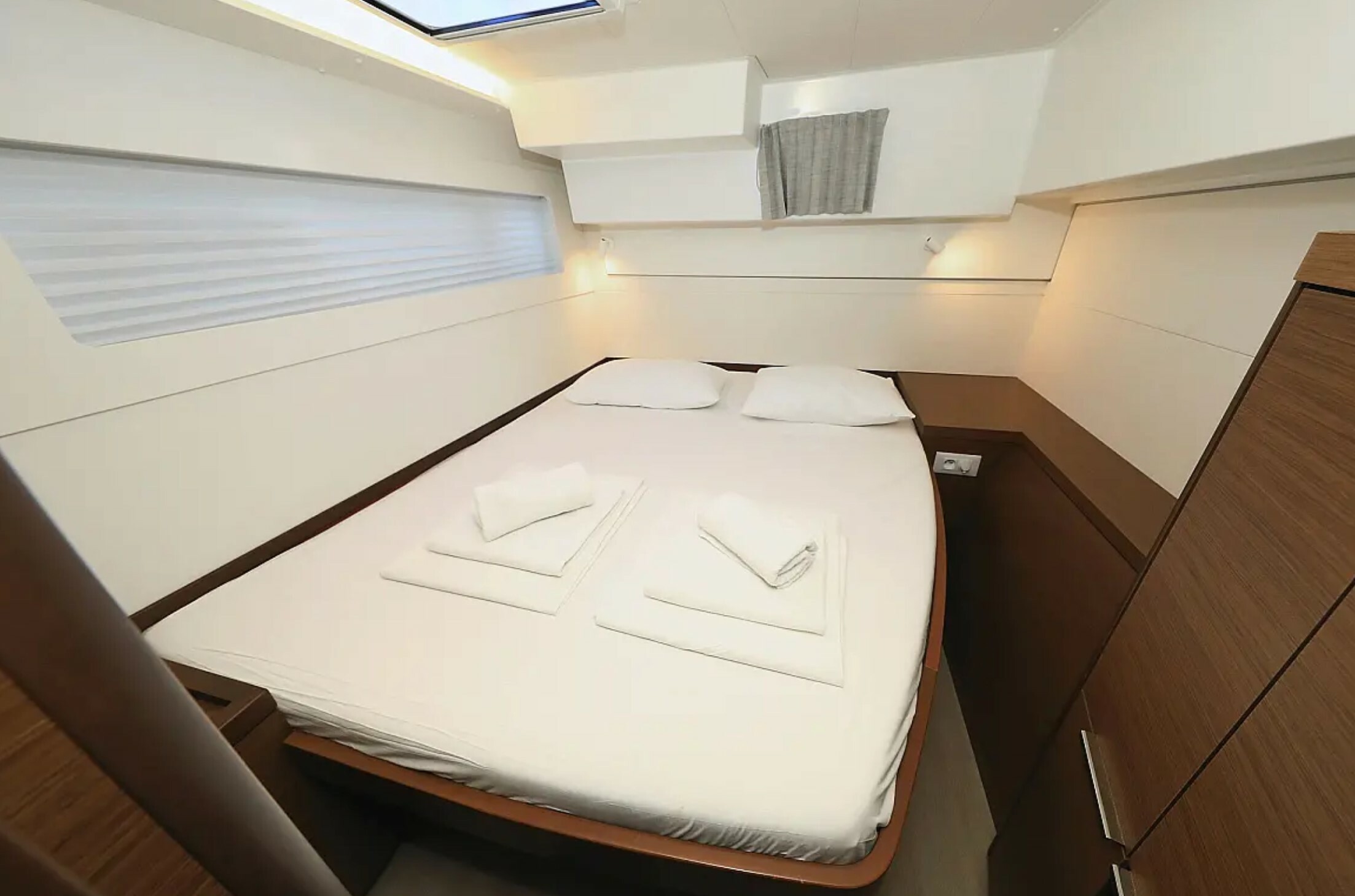 With her new visual identity, the 40 immediately stands out. While faithful to the image of Lagoon’s "DNA", a new style is born: an individual, streamlined and accomplished design depicts her large portholes and panoramic view. This creates a refined and high-performance unit, emphasised by the chamfer running from the bow to the stern. A new generation Lagoon, recognisable at first sight.