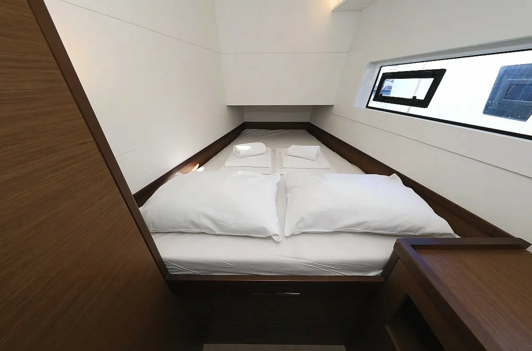 A selection of luxurious materials, by Nauta Design, enhances the new interior lines.A wide choice of accommodation layouts to meet the needs of owners and large families.A new aft cabin, fitted with a « semi Island bed » berth and multiple storage space.Large hull window glazing with integrated portholes in the cabin provide exceptional natural light and an outstanding view.Particular attention given to volume layout, smooth flow of circulation and luminosity makes this new interior a truly pleasant living area.