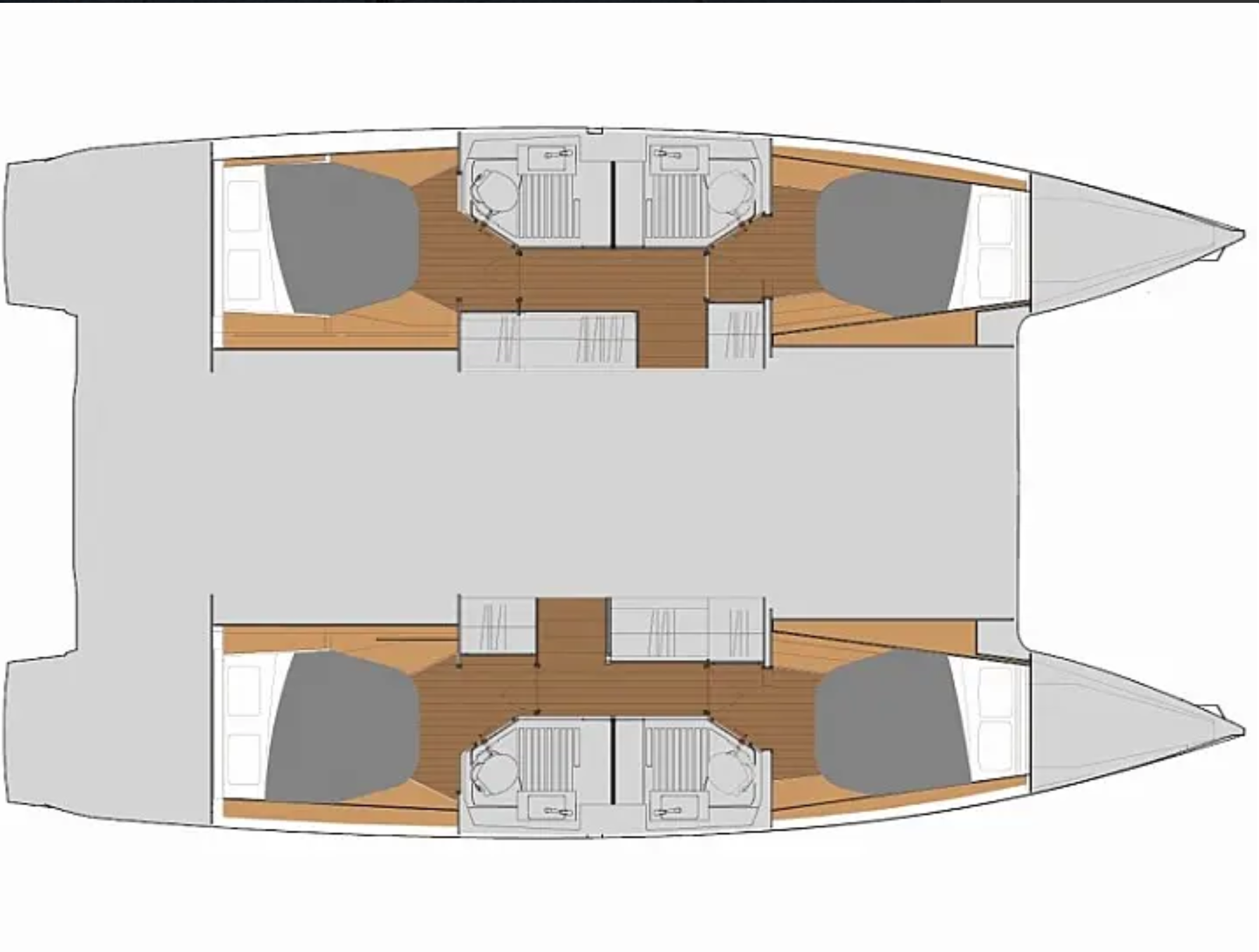 Le cabine sono ampie e tutte dotate di passauomo e oblò laterale per una ottima illuminazione e circolazione dell'aria. Da notare a proposito che i passauomo sono tutti "flushdeck" e che, quando chiusi, rimangono a filo della tuga evitando così pericolosi inciampi quando si cammina in coperta.